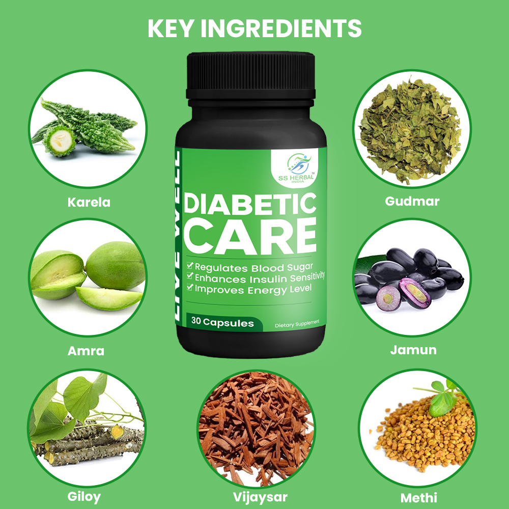डायबिटीज केयर कैप्सूल पैंक्रियास की इंसुलिन उत्पादन क्षमताओं को सुधारनेमें मदद करता है, जिसके परिणामस्वरूप ग्लूकोज/शुगर लेवल कंट्रोल में रहता है ।